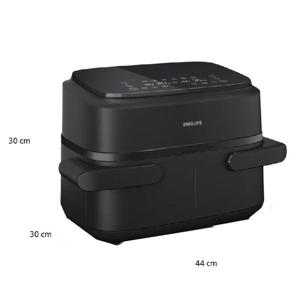 اگر به غذاهای رژیمی، بدون روغن و سالم علاقه دارید، وقت آن رسیده یک دستگاه سرخ کن تهیه کنید. سرخ کن بدون روغن فیلیپس مدل NA150 از سری 1000 یکی از محصولات جدید، بسیار باکیفیت و عملکرد عالی بوده که توسط حرارت بالا و فناوری RapidAir بدون نیاز به روغن مواد غذایی را پخته و ترد می کند. این سرخ کن با توان 2450 وات از قدرت و سرعت خوبی در طبخ غذاها برخوردار بوده و با 90 درصد چربی کمتر وعده های غذایی شما را آماده می کند. سرخ کن philips با بهره گیری از طراحی منحصر به فرد و سبد کشویی منعطف، امکان پخت یک غذای در حجم و ابعاد بزرگ یا همزمان دو غذای متفاوت را فراهم کرده و با ترکیب سرعت و کیفیت پخت، تردی و خوشمزگی را در بالاترین سطح ممکن ارائه می دهد. قابلیت گرم کردن مجدد یکی از ویژگی های مهم این محصول بوده که در عرض چند دقیقه و بدون نیاز به مایکروویو، غذایی که از ناهار ظهرتان مانده را گرم می کند. از آنجایی که این سرخ کن دارای دو محفظه پخت بوده می توان درون هر محفظه مواد غذایی یکسان یا متفاوت را قرار داده و آماده کرد. شما می توانید زمان های پخت را به طور خودکار در 2 کشو همگام سازی کنید تا هر دو غذای شما با هم آماده سرو شوند. هنگام آشپزی با این سرخ کن دو سبدی فیلیپس در مقایسه با فر سنتی، تا 40٪ سریع تر بپزید و تا 75٪ در مصرف انرژی صرفه جویی کنید. سیستم خاموش شدن خودکار ایمنی دستگاه را افزایش داده و همچنین احتمال سوختن را به شدت کاهش می دهد.